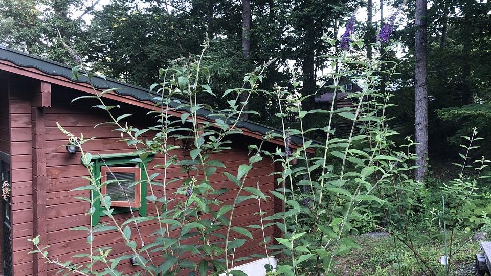 「DEER軍団(鹿)」への食害対策の新しい取り組み「戦わずして勝つ戦略」の一環としてブッドレア(ホワイトとパープル系)を購入して初めて植えたのは2015年。驚く程に鹿に強かった(食害皆無)ため、2016年(ピンク系)、2017年(希少種)と追加購入し、八ヶ岳の敷地の主力防衛戦闘機として、オフィス周辺や隣地との境界線近くに集中配備した。