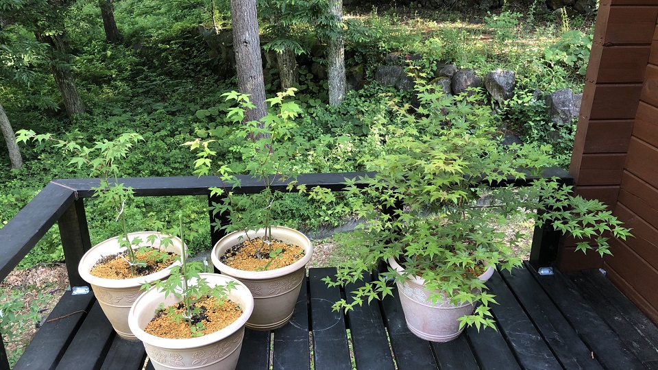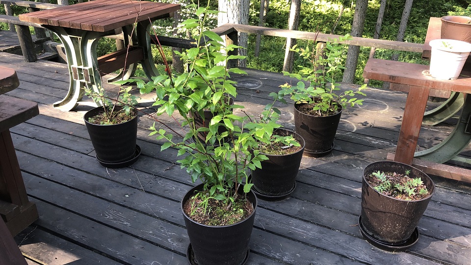 見捨てるのは忍びないので、前回の八ヶ岳滞在時に、この4本を地植えから鉢植えに変えて、メインウッドデッキの「リハビリコーナー」に置いた。4本共、枯れてはいなかったが、相変わらず「勢い」はない。私の「リハビリ作戦」の成功率は、ブルーベリー、メイプルと、かなり高いので、樹高が50~60cm程度になるまではしっかりと守ってあげよう。