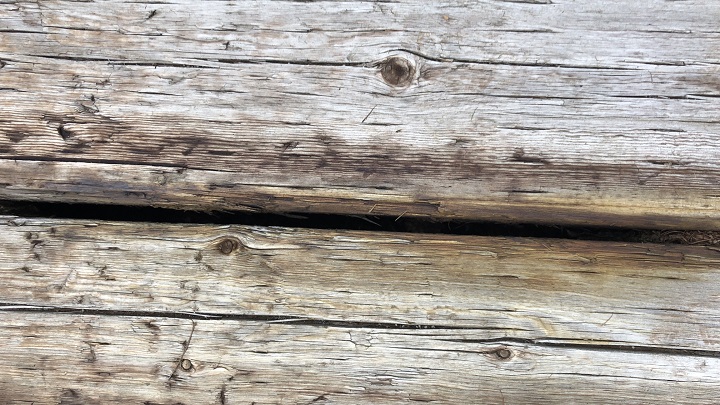 枕木アプローチは、土台としてレールのように枕木を敷いた上に、アプローチとして枕木を並べて置いてある。そのためレールの間(隙間)は空洞になっている。コガタスズメバチはこの空間に巣作りをしているようだ。