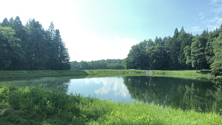 溜池の左側には、森の奥へと続く細い未舗装の道がある。車1台がやっと通れる程の幅であり、目的が無ければ進入するのを躊躇するような道なのだ。