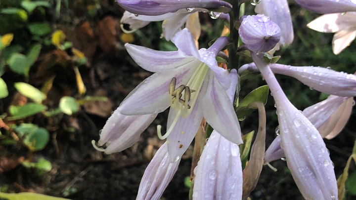 朝の珈琲を味わった後はお庭の巡回。昨日はじっくりと眺める気分にならなかったホスタさん達を愛でた。