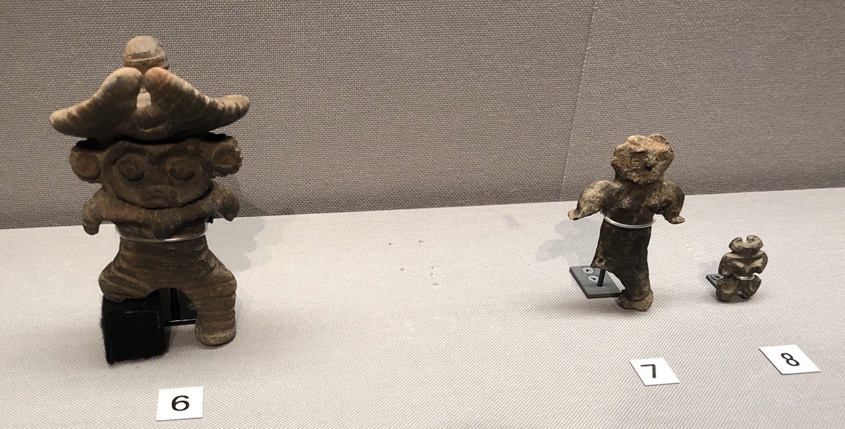 残り時間がわずかになったので、最後に「常設展示コーナー」に土偶さんがいらっしゃるかを確認に向かう。普段は、しゃこちゃんやハート顔土偶さんといった「有名土偶さん」が並ぶスペースに「お留守番部隊」となった土偶さん達がヒッソリと佇んでいた。「お留守番ご苦労さま」と心の中で感謝して、写真撮影可である土偶さん達をパチリ。裏方の土偶さん達にもしっかりとご挨拶するのが「真の土偶さんファン」なのである。