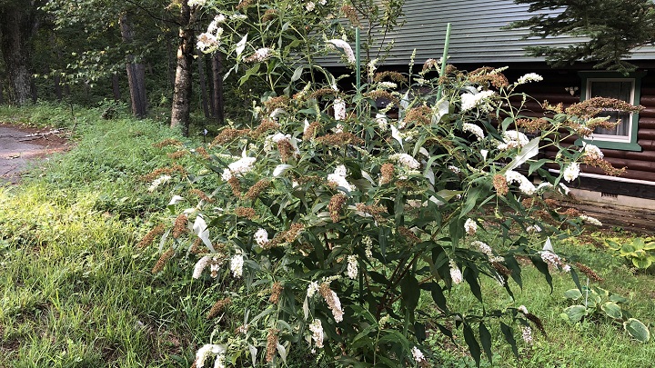 ブッドレアのホワイトは、既に花穂の半分は茶色く枯れ始めている。