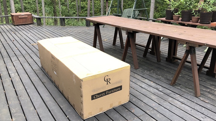 お昼前、配送業者のトラックが、オフィス脇の町道ロータリーに入ってきた。停車してすぐに業者さんが、巨大な段ボール箱を荷台から運び出そうとしていた。予想以上に大きな箱だったので、私も手伝って一緒にメインウッドデッキに運んだ。