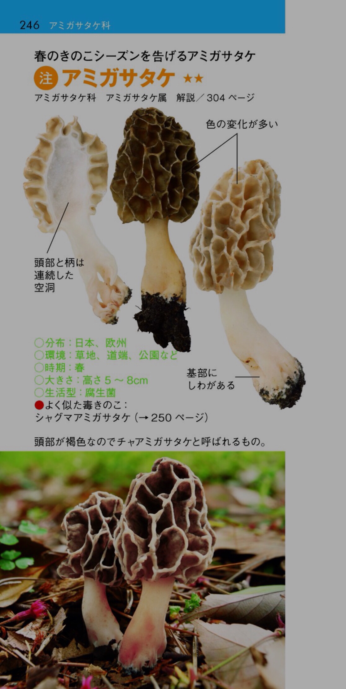 漸く、ひとつだけ間違いないと思えたのが、オフィスエントランスの周辺に毎年顔を出す「アミガサタケ」だった。食用の際には「ゆでこぼしてから利用する。じっくり煮込む料理向き。生食は中毒。」との解説があった。