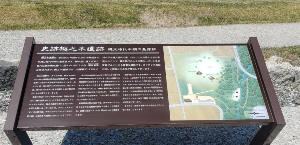 そんな名前の遺跡は、これまで見た事も聞いた事もなかった。すぐに記事をクリックすると、所在地は、北杜市明野町、2018年4月27日オープンとある。公式HPらしき物は見当たらなかったが、周囲の景観は素晴らしく、敷地内のガイダンス館に縄文式土器等、出土物が展示されている等々の情報を記したブログ記事を数本発見。さらにGoogleマップで、梅之木遺跡が、社主さまと訪れた事のある「ハイジの村」に近い事を知った。方向的には甲府に向かう途中にあり、申し分の無い「寄り道」スポットである。