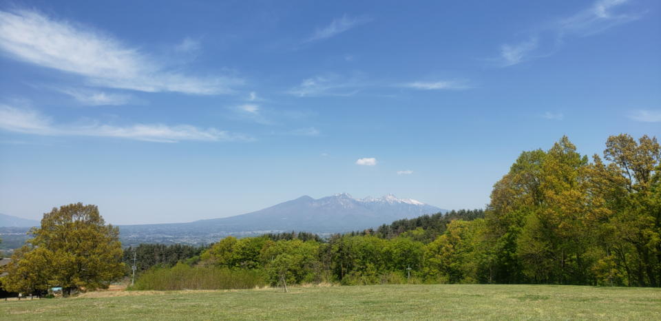 そんなわけで、この日の午前中、急遽、「梅之木遺跡」を探訪する事になった。八ヶ岳オフィスを発ったのは午前9時半。途中コンビニに立ち寄った後、新緑の美しい山道を走行。迷う事無く遺跡に到着したのは10時20分過ぎだった。駐車スペースにD4を置いて周囲を見渡す。南アルプスと八ヶ岳の眺望が兎に角素晴らしい。「神々のおわします地」と言うよりも「神々の愛でる地」といった表現が相応しい場所である。