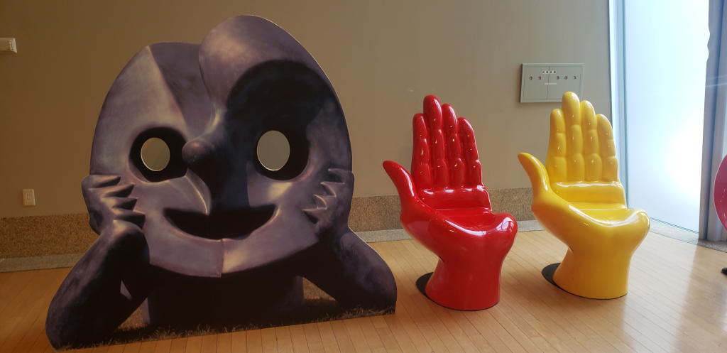 企画展示の案内所では「展示スペースは基本的に写真撮影禁止」である事を伝えられた。仕方ないので、写真撮影が許されているごく一部のスペースで記念撮影。