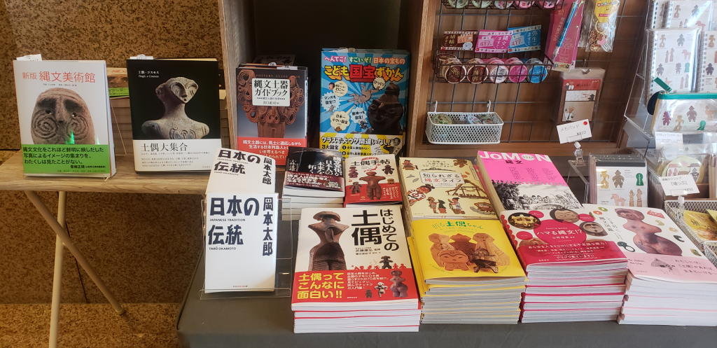 次なる望みは、ミュージアムショップで土偶さん関連のレア物を見つける事である。「岡本先生の縄文好きは有名であるので、何か面白いグッズがあるに違いない。」と信じ、展示室を出てミュージアムショップに向かった。やった、「縄文コーナー」を発見。が、書籍を中心に私が所有しているものがほとんどだった…