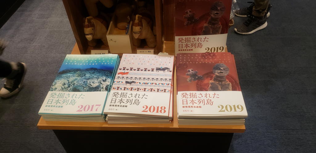 閉館までの残り時間が5分を切ったところで、恒例のミュージアムショップでのお買い物。土偶さんを鑑賞した際に『発掘された日本列島2019 新発見考古速報』なる書籍が販売中である事を確認していたので、迷わず購入。価格は税込み1,944円。ページをパラパラ捲ってみると、ご対面した土偶さん達の解説もしっかりと記されていた。文化庁「編」の共同通信社「出版」で、2017年からの3年分が並んでいた。シリーズ物として毎年出版されているようだ。何年分からあるのかな?