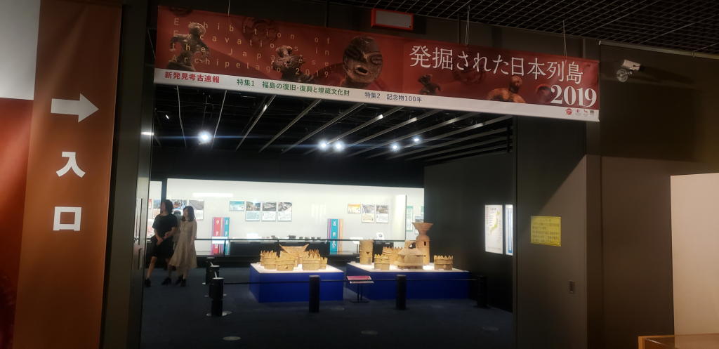 建物の第一印象は「兎に角、デカい」。さすがにメジャーな国立博物館には及ばないものの、都道府県立博物館の中ではおそらくトップクラスであろう。あまりにも広いために、入場券(600円)を買って、長~いエスカレーターに乗って、目的の「発掘された日本列島2019」の展示室に辿り着いた時には、もう5時をちょっと回っていた。