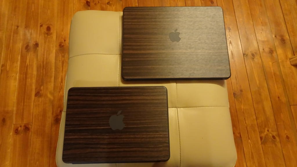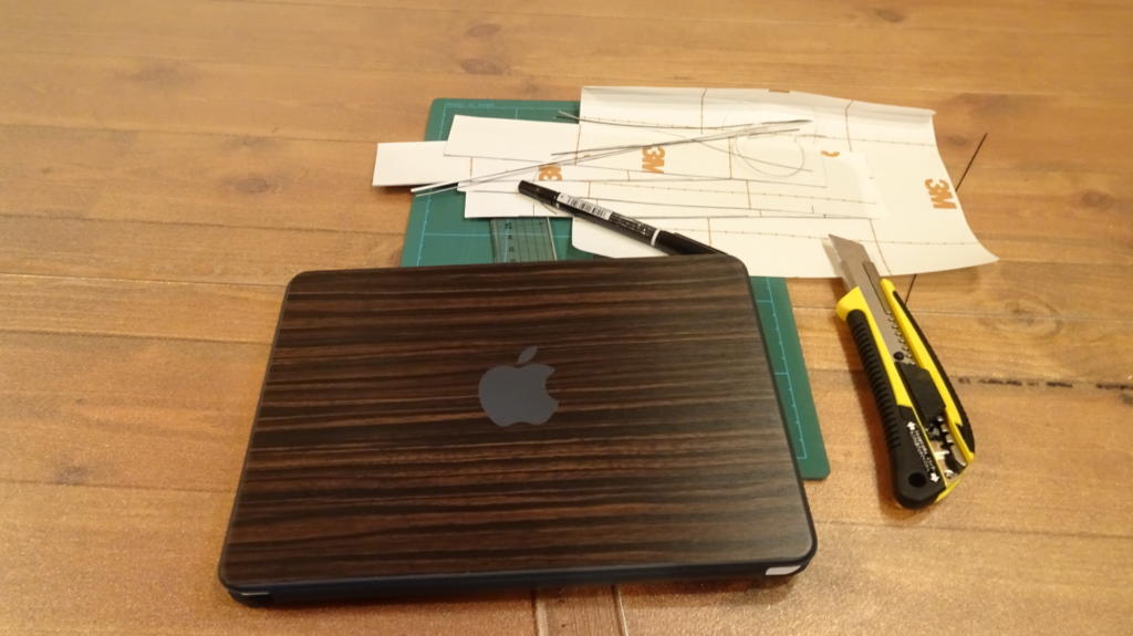 先週の東京での仕事では、既に Smart Keyboardも合わせて使っていたのだが、肝心の「お揃いのスーツ」を着せる儀式が終わっていなかったのだ。そんなわけで、午後6時前から「トリグラフ・リサーチのデジガジェチームの証」である木目調シール(エボニー)の作成作業に着手。