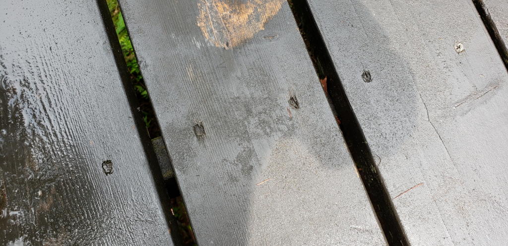 こういう「特性」がわかっているので、自分では決めずに社主さまの判断を待った(実は、個人的にはメインウッドデッキの塗装をした方が良さそうだなと考えていた…) 1時45分ちょっと前、スマホで天気予報をチェックしていた社主さまから「今は晴れているけれど、夕方になる前に雨が降るような気がする。これからオフィスのウッドデッキを洗って、明日の朝から一気に塗装をしましょう。」とのありがたいお告げがあった。