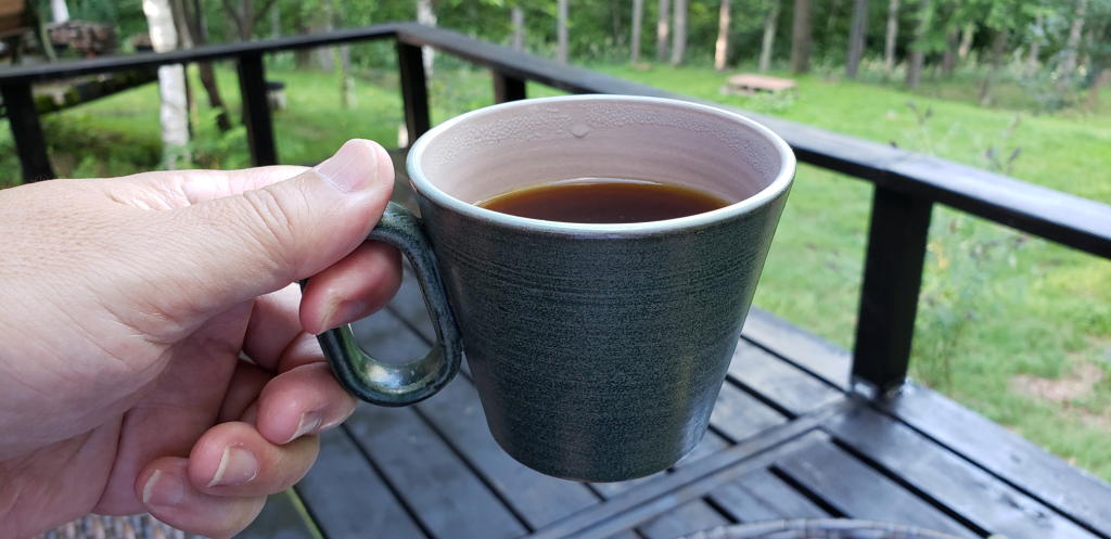 さて、珈琲豆は何にしようか? 丸山珈琲の「小諸ブレンド」に決~めた。マグカップは、最近の一番のお気に入りである「八戸焼」だな。実はこのマグカップ「生涯補償」付き。破損した場合、初回は無料、2回目以降は2,000円で新品に交換してくれる。まだ交換した事は無いが、長く愛用できる制度が確立されている事が「愛着」を増す効果を有しているように思う。巧みなマーケティングである。