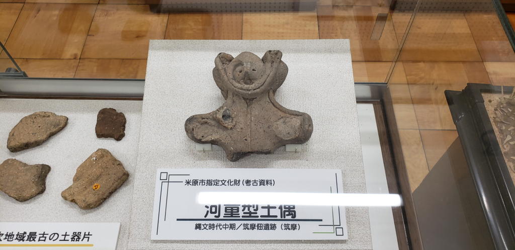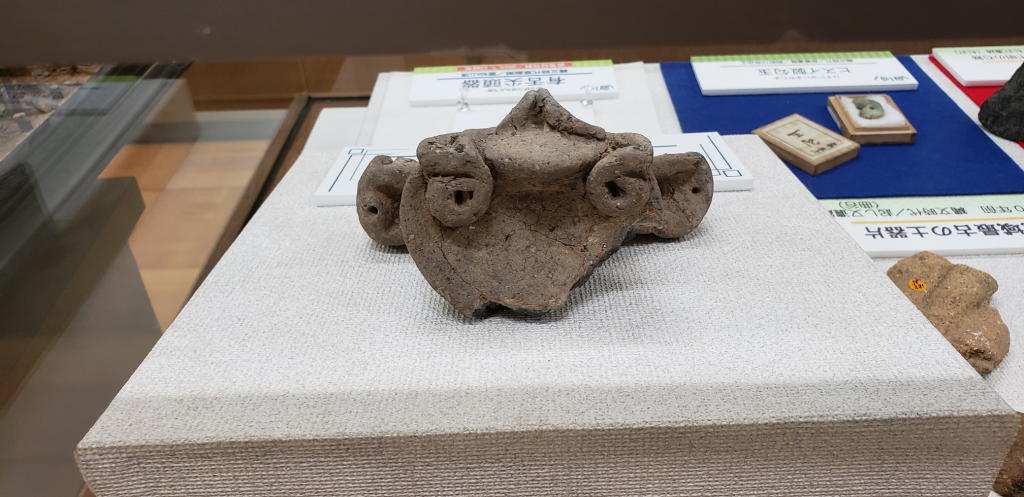 詳しい解説はなく「米原市指定文化財」「縄文時代中期」「筑摩佃遺跡(出土)」との情報があるだけだ。こういう展示スタイルを見ると、井戸尻考古資料館を筆頭に八ヶ岳界隈の考古資料館の解説情報の充実度合いを改めて実感する。井戸尻なんて解説プレート読むだけで楽しめるものな…