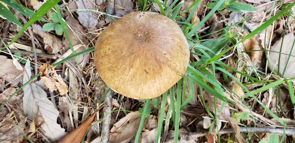 昨日、花殻取りを終えた頃はもう薄暗くなっていたので、今朝、帰宅前に改めて15分程、敷地内を散策。ちょっと歩いただけで、財産区林に近いスペースですぐに何種類かのキノコを発見。