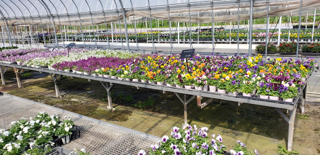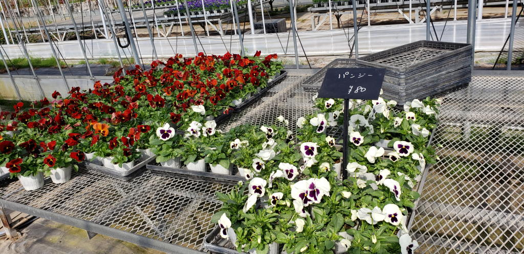今年の5月に偶然訪れて、すっかり魅了された「ファーム小尾」さんへ向かう。私は「この時期に花屋さんが営業しているのか?」と半信半疑だったのだが、社主さまは「パンジーやビオラはこれからが開花時期本番よ!」と断言。「鹿に強い植物」以外の花卉類については、社主さまの知識には敵うはずもないので素直に従った。