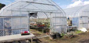 ファーム小尾さんの駐車場着は11時35分。4棟並ぶ大きなビニールハウスの向かって左から2番目で、しっかりと営業中であった。