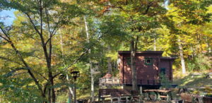 軽い昼食後にメインウッドデッキのガーデンベッドに寝転がって改めて庭の様子を眺めた。紅葉が美しい。正確に表現すると、黄色く色付き始めた様々な木々の葉が美しい。