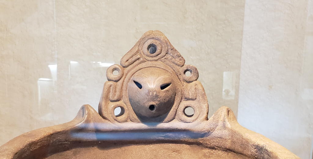受付前でスタンプを押した後、再び1F奥の顔面付土器の展示スペースに足を運んだ。単独展示されている「顔面把手付土器」をじっと眺めていたら、またドキドキしてきた。