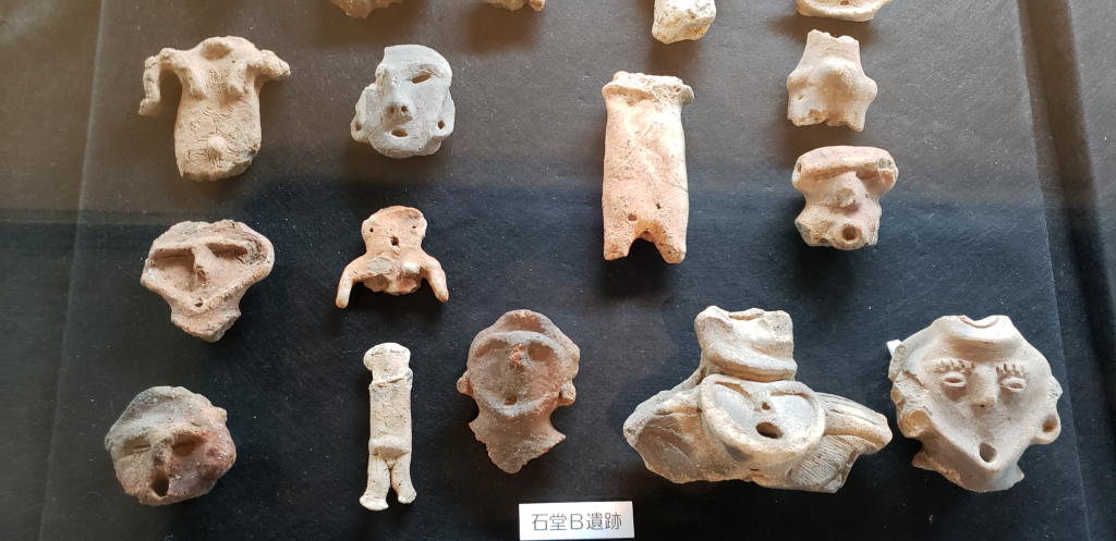 続いて、エントランスを通り過ぎた1F奥の展示スペースに向かう。おお~、土偶さんのお顔がスラッと並んでるぞ! 顔面付土器もいつもと違うレイアウトだぞ~ 気分が高揚し、Galaxy Note 9で片っ端から写真撮影。アドレナリンが分泌され、心拍数が上昇している事を実感した。