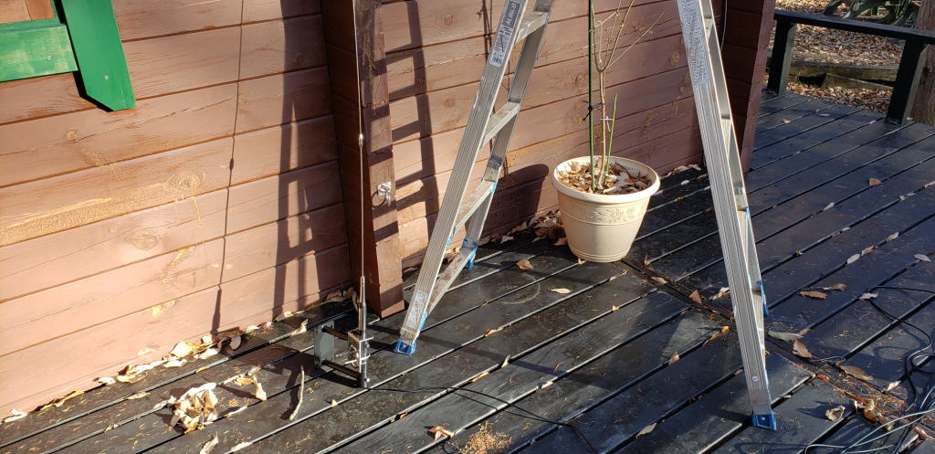 お得意の「ちょいちょいサササ」モードで作業開始。八ヶ岳オフィスにはDIY道具を筆頭に様々な工具や備品が完備している。ログハウス(オフィス)をセルフビルドして以降は、ほとんどの作業は「軽作業」に過ぎないのである。