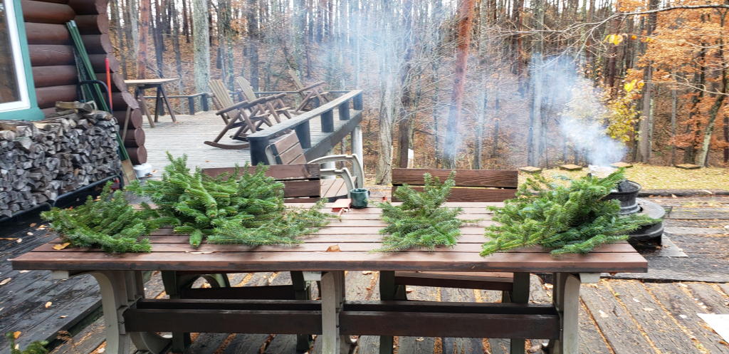 社主さまは、今日も朝早くから庭での作業を開始。クリスマスリース用となる伐採したモミの木の小分け作業も器用にノコギリを使って、あっと言う間に済ませてしまった。「豪腕」とか「凄腕」といった表現がピッタリの仕事捌きである。
