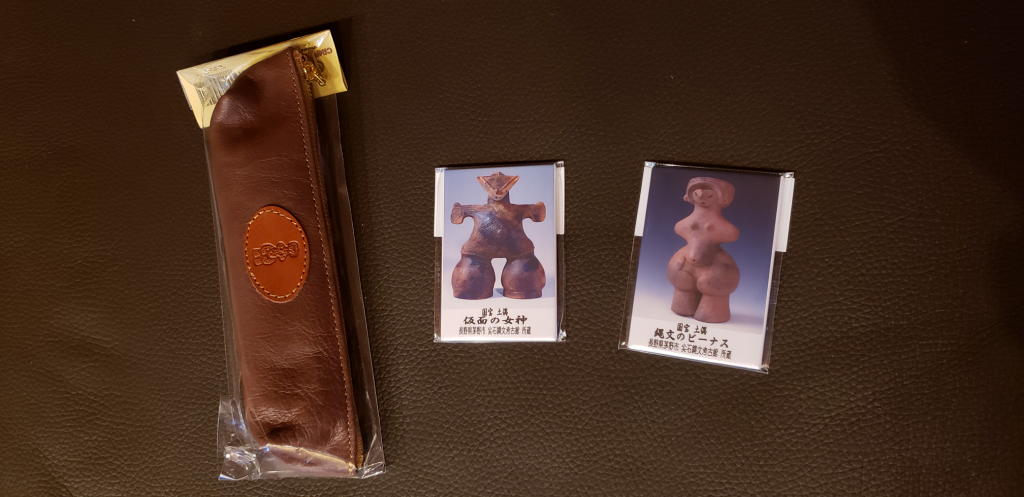 さあ次はミュージアムショップだ。土偶さんグッズの収集も今回を最後にしよう。さて何を購入しようかな? いつものように、迷うことなく決まった。縄文のビーナスさまのペンケースと、国宝土偶さんそれぞれのマグネットプレートである。3点合わせて1,920円の代金を支払いエントランスへと向かう。