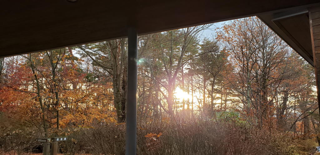博物館を出てD4が待つ駐車場に向かおうとした際に、ちょうど尖石遺跡の方向に沈みつつある夕陽が私を照らした。穏やかで優しい光だった。