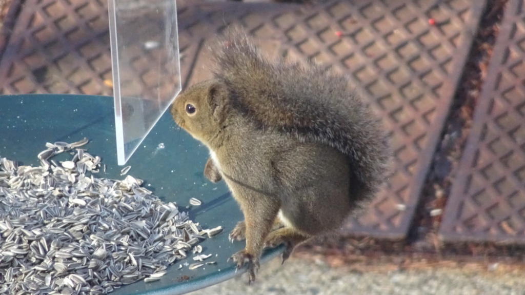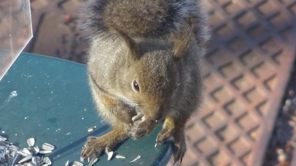 この間、勇気のあるカラ系の小鳥さんが2~3回、ヒマワリの種を啄みに来たのみ。まるで「3号店の王様」であるかのように彼は振るまい、それを見守るオーナーの私も「至福の時」を味わった。