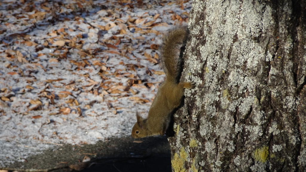 だが、今朝の9時過ぎ、オフィスの窓から見えるナラの大木の幹を何かが移動する気配を感じた。やったぞ! ミッターマイヤーさまご来店のシグナルである!!