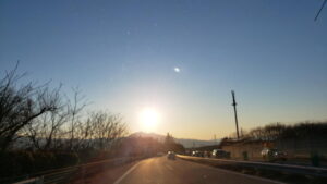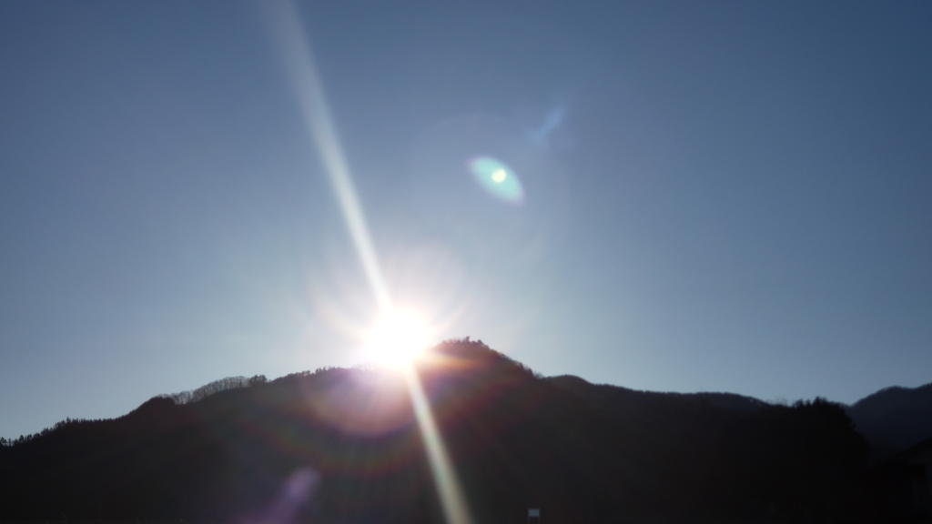 最後に眺めた美しい「朝陽」は、釈迦堂遺跡博物館後方の山(黒岳かな?)から上るものだった。