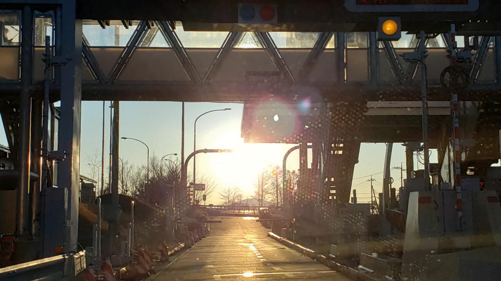 日の出の直後なので、まるで「朝陽に愛でられた帰宅風景」となった。これは「単独出社」では味わえない楽しみだ。