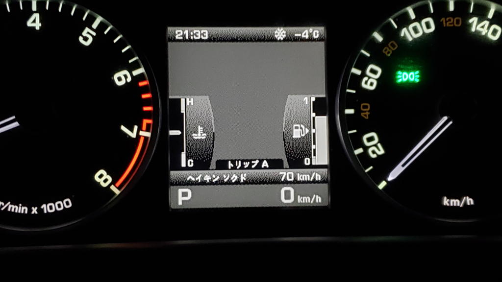 所用前に立ち寄った神社の駐車場の昼前の気温が15℃だった事を記憶している。鹿の湯から戻った際のD4のメーターはマイナス4℃を表示。気温差は19℃か…