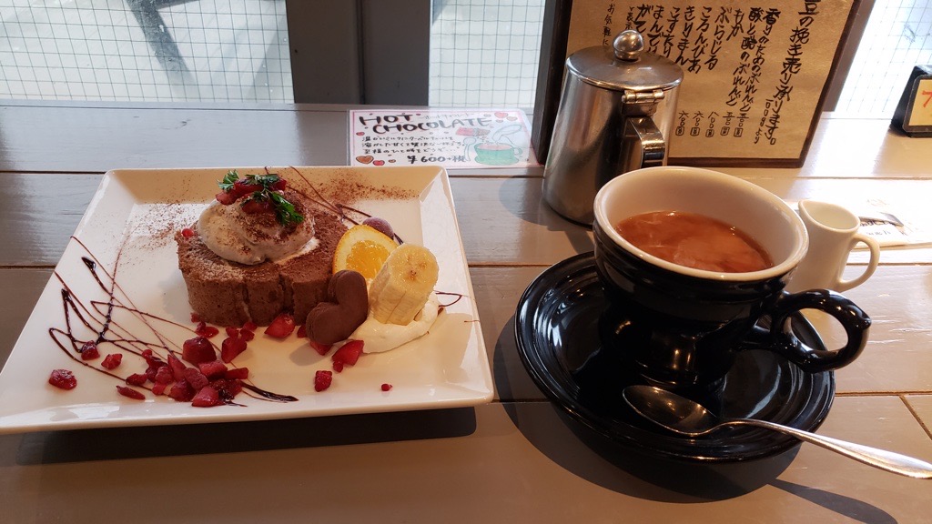 松江には午後2時42分に定刻通り着。日本全国の講演先で決めてある「お気に入りの喫茶店」のひとつでケーキセットを注文し、3時半に講演先の銀行本店入り。