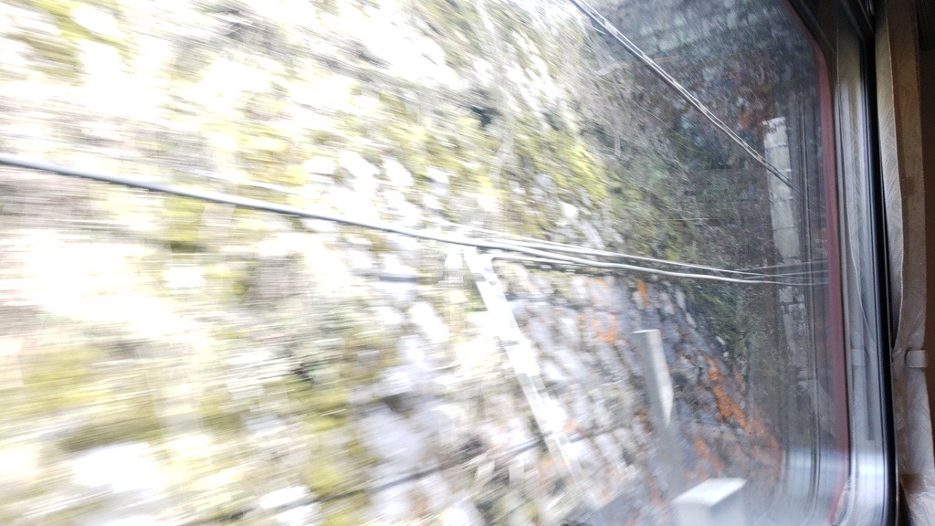 12時4分発のやくも11号に乗車。眠ってしまうことのないように『分水嶺越え』は午後1時半過ぎになることを事前調査済み。
