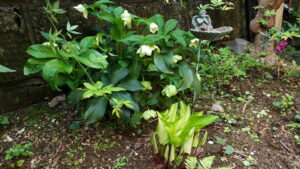 ふと庭を見ると、クリスマスローズが満開である。八ヶ岳よりも暖かいので、ホスタや百合も一斉に芽吹き始めている。
