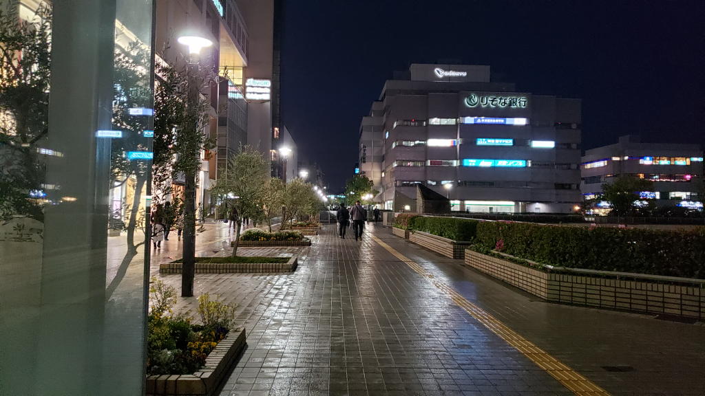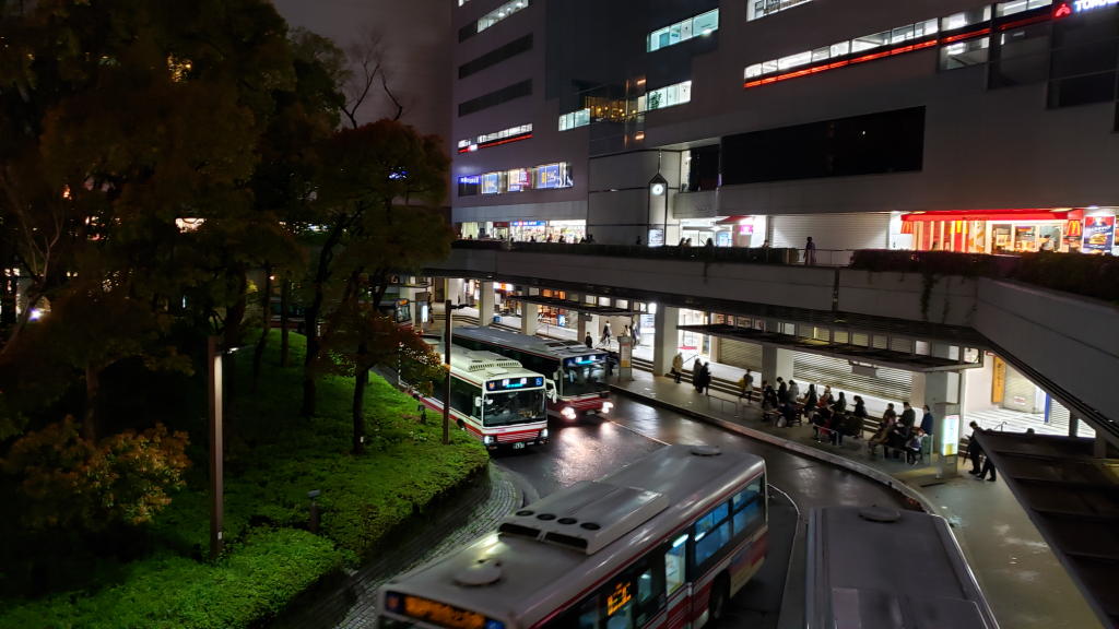 呼吸回数2回(さすがに嘘)で無事に新百合ヶ丘着。いつもは乗降客でいっぱいのホームも予想以上に人はまばら。駅前のペデストリアンデッキも雨のせいか閑散。普段は人で溢れかえるバスロータリーも乗降客は少ない。平日の通勤時間でこの状態なら、緊急事態宣言は十分にワークしているなと大満足。