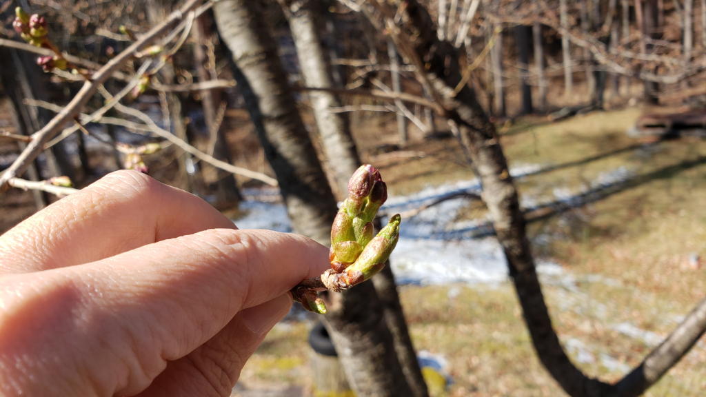 庭のソメイヨシノの枝を手に取ると、蕾は開き掛けており、ここ数日で本格的な開花期を迎えそうだ。昨年の開花は5月1日で例年よりもかなり早かったが、今年はもしかすると4月の開花となるかもしれない。