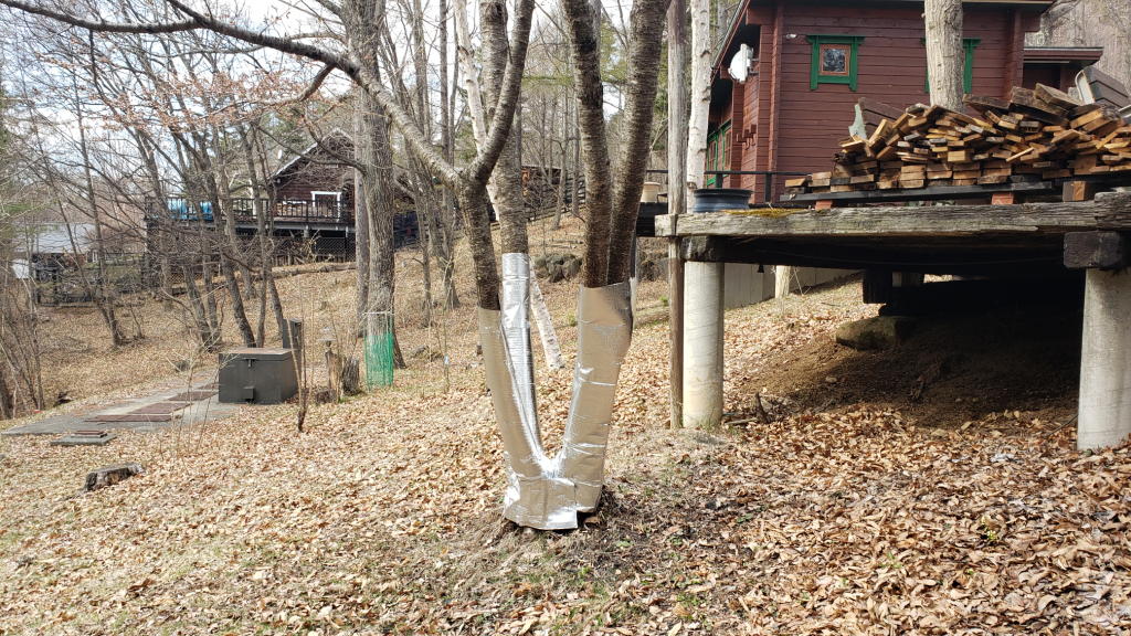 この低コストで手軽な「対鹿軍団防御バリア」の効果で、今年も冬期における庭木の被害は皆無。かつての樹皮を無残に囓られる被害が嘘のようだ。