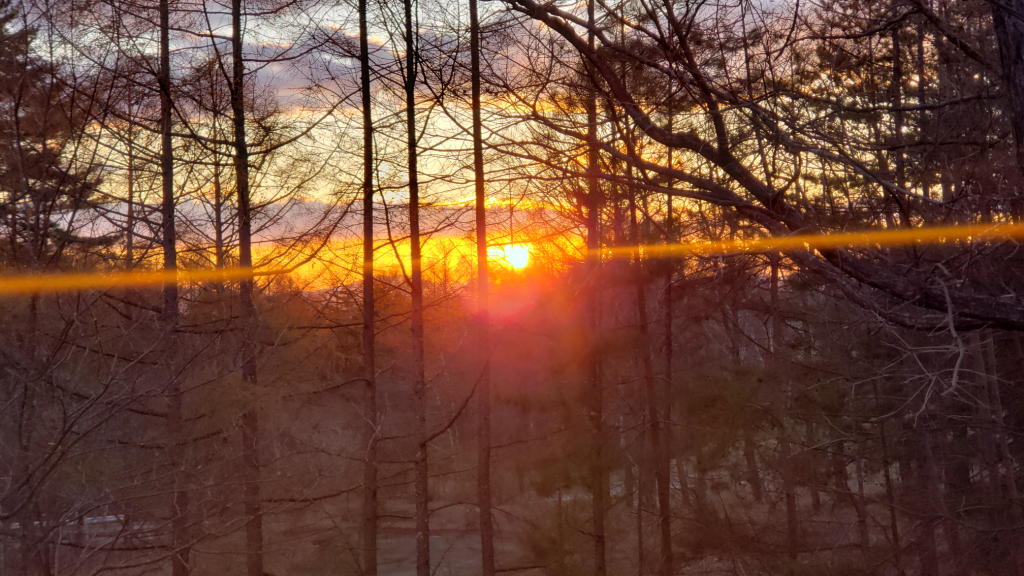 今日は、オフィスウッドデッキから眺める夕陽がとても美しかった。南アルプスの山々に沈まんとする姿と本宅三角窓に映る姿、正に甲乙付けがたい。