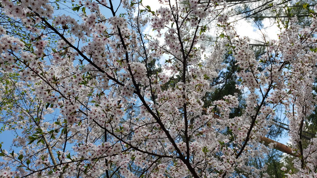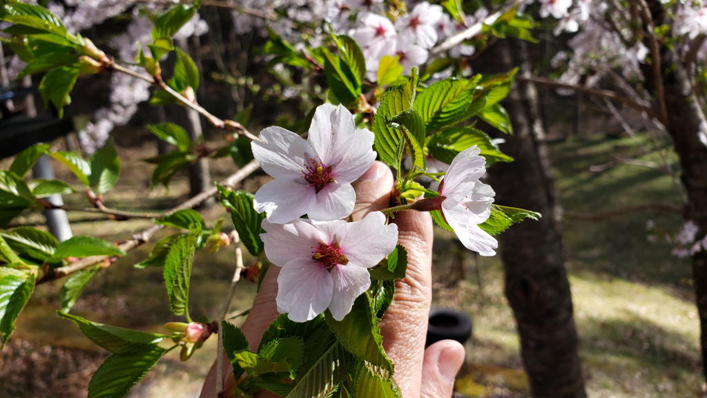 午後になると快晴とまでは言えないものの再び青空が広がり始めた。午後3時過ぎに枕木テラスに出ると、ソメイヨシノの花びらがヒラヒラと舞い始めていた。今日かなと予想していたのだが、結局、昨日が満開(8分咲き)だったんだな…