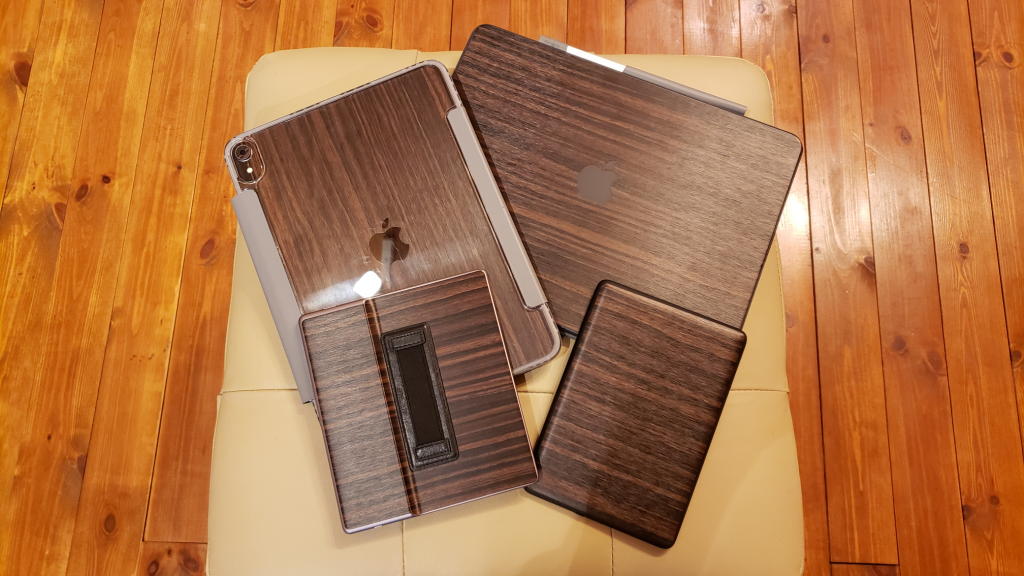 そんなわけで、今日の夕方、エボニー(木目)柄のスキンシールの端材を探してきてスーツを新調。