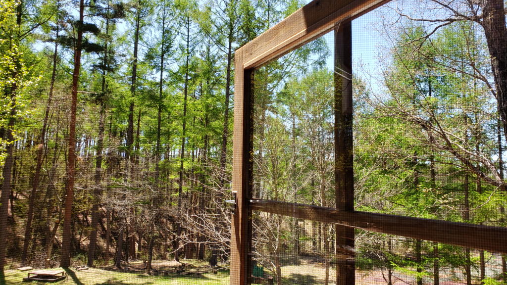 朝の珈琲を味わった後、敷地内を散策。昨日の雨が「恵み」となったようで、庭の木々の新芽が美しく輝いていた。