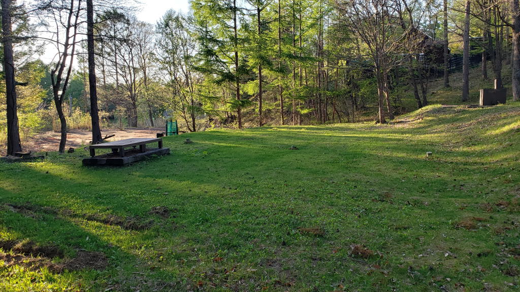 さすがに疲れたので6時過ぎからノンビリと15分程敷地内を散策。気が付けば庭の芝生が一斉に色付き始め「緑のカーペット」が広がり始めている。