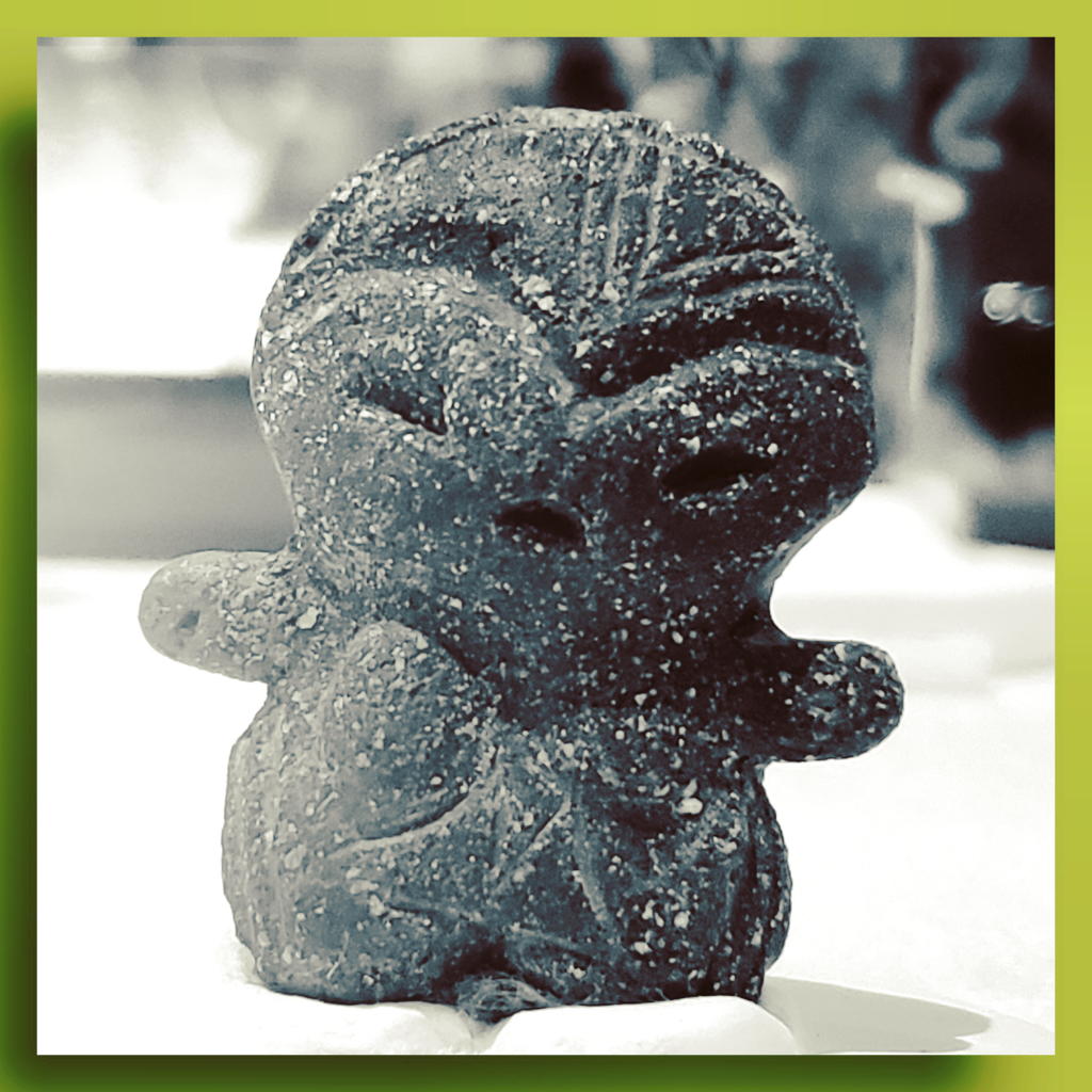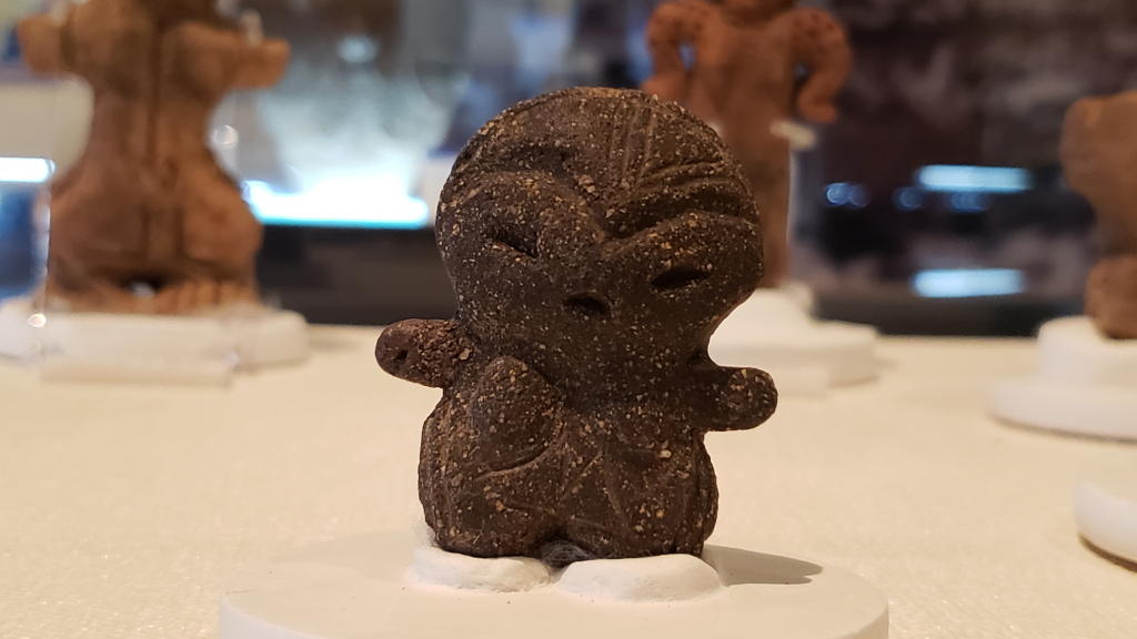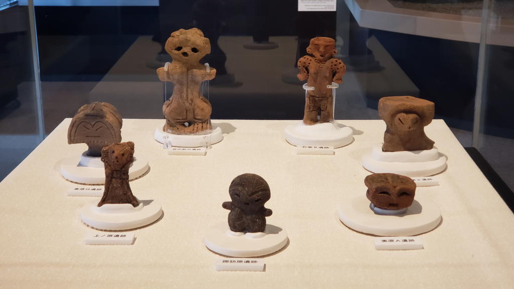 「ちびーなす」は、その形状からすぐにどの土偶さんか判明。「石堂地母神」の方も、出土遺跡の表示プレートから紐付け可能だった。