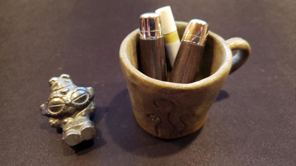 八ヶ岳オフィスの土偶さんグッズ収納スペースはもう満杯。入館料無料の考古博物館への「お礼グッズ購入」以外の買い物はしないと決めていたのだが、オフィスの机上でビジネススタンプ等の収納にお洒落と判断。500円とお手頃だったので購入した。