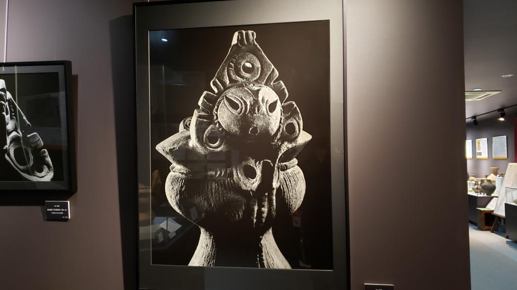 この土器のお顔はオーラ発してるよな。 でも何故か「写真撮影不可」のプレートが付いていた。仕方ないので、展示スペースに貼ってあったモノクロポスターを撮影。
