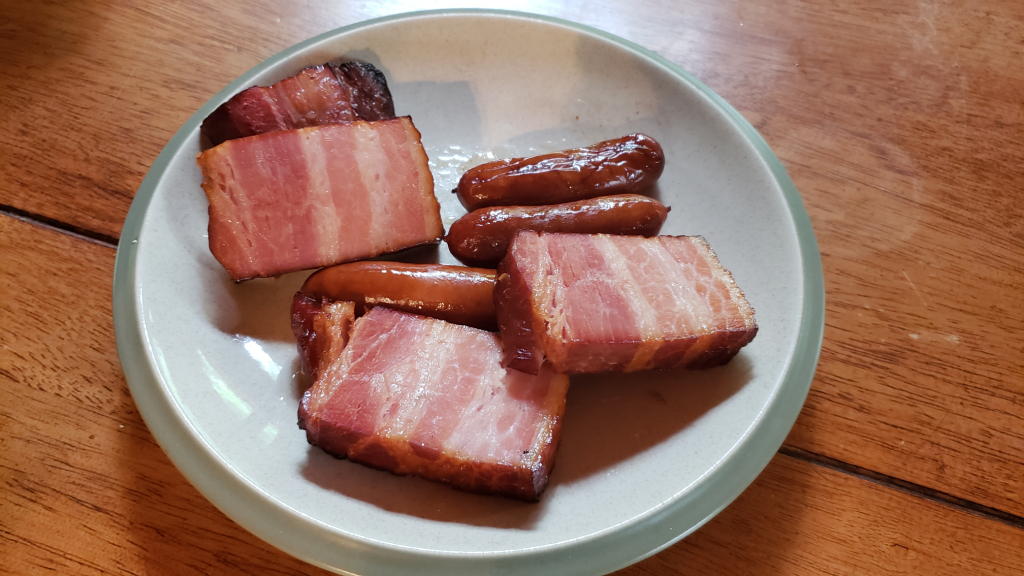昼食は、社主さま(家内)が最近嵌まっている色々なスモーク(燻製)料理に舌鼓を打った。私が購入したままオフィスの地下室に放置してあった(忘れていた)スモーカーが大活躍を始めたのである。何事にも「熟成期間」は大切なようだ。