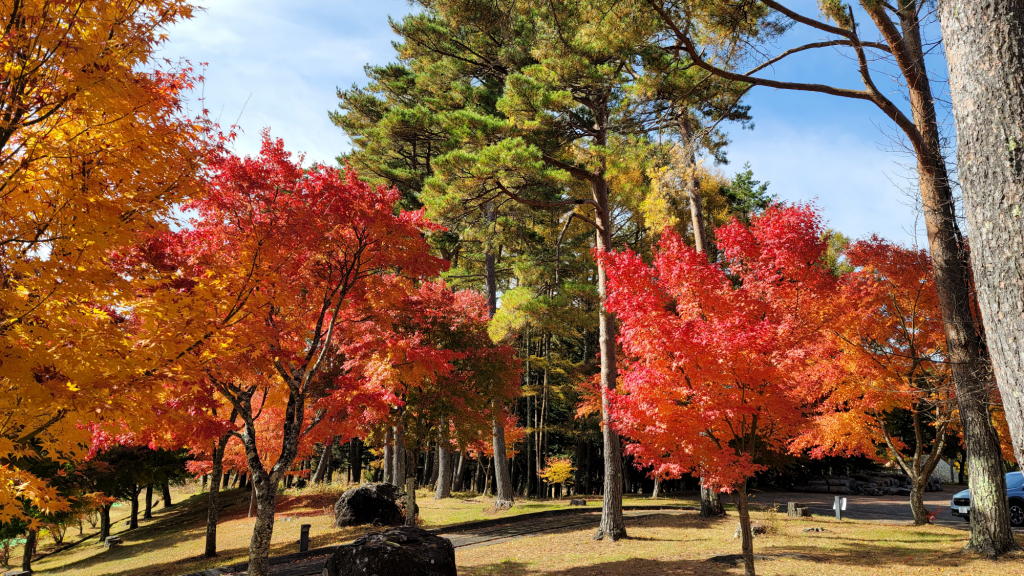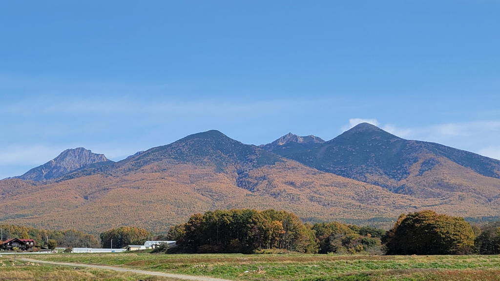 八ヶ岳オフィス敷地内の広葉樹の紅葉は既に「8~9合目」で、残す見せ場は「唐松の落葉(黄金のシャワー)」だ。だが、鉢巻道路周辺の紅葉は、まだまだ「盛り」の場所がいくつもある。